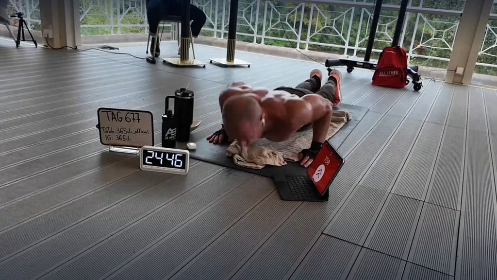 Een Duitse man van 36 heeft een nieuw wereldrecord voor push-ups gevestigd. Ilja Mazar uit Düsseldorf wist binnen een uur tijd 1651 keer met zijn borst de grond te raken. Dat zijn ruim 27 van zulke chest-to-ground-push-ups per minuut. Mazar staat nu twee keer in het Guinness Book of World Records. In mei had hij al het record voor gewone push-ups aangescherpt naar 1950 in een uur. De influencer en fotograaf Mazar begon twee jaar geleden met het...